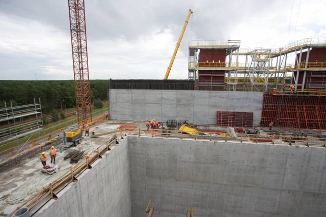 Obecnie na terenie budowy trwają m.in. prace związane z wykonaniem ścian bunkra do poziomu belek podsuwnicowych. Powstał już strop na poziomie +19,20 m oraz północna belka podsuwnicowa. Wykonano również strop budynku garaży, na który zużyto ok. 600 m3 betonu. Jednocześnie prowadzone są prace przy budowie budynku instalacji chemicznej stabilizacji pyłów i popiołów z systemu oczyszczania spalin, a także przy wykonywaniu V kondygnacji budynku centralnej dyspozytorni i laboratoriów. W 90% ukończono wykonywanie ścian budynku instalacji do waloryzacji i sezonowania żużli. Postępują również prace przy montażu kotłów obu linii spalania oraz lei zsypowych pod ich rusztami. Trwa instalacja chłodni wentylatorowej, skraplacza oraz rozpoczęto dostawę odżużlacza. Trwają ponadto przygotowania do montażu walczaków (montaż pierwszego zaplanowano na 9 lipca). Na budowie pracuje ok. 190 pracowników fizycznych oraz trzy dźwigi stacjonarne i w zależności od potrzeb kilka dźwigów samochodowych.